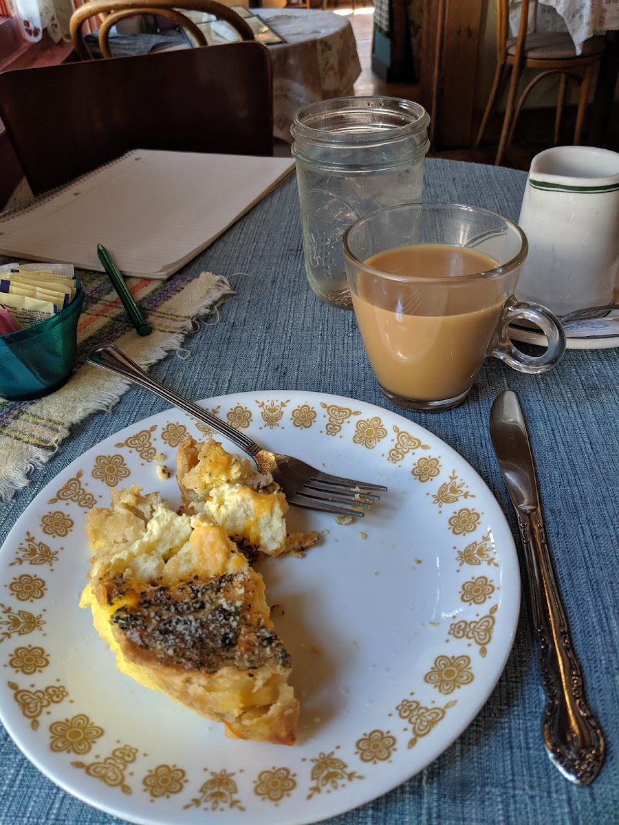 I enjoyed my visit with my son yesterday! This place has such a cute cozy little bistro vibe. My service was good, my waitress communicated with me frequently, whether it was checking in or updating me on something. I ordered the Fried Egg Sandwich w/fruit, and extra side of fruit, a side of German Potatoes, an Iced coffee with cream (later added sweetener, the coffee is strong and a bit bitter - I'm good with that, just needed sweetener), and two pieces of pie (to-go). The Sandwich and fruit were delicious, I only wish the fruit serving was a little bigger so I didnt have to order two. The German Potatoes weren't really something I would order once I tried it, however they kind of grew on me so I'd still say they were good, just not my thing. They are sweet and savory, just a heads up. I didn't get to try the lemon pie because my fiance got to it first, but the Honey Sea Salt pie was to die for! So good. And the price point was reasonable, on everything I got, I spent $38.01 before a tip. Also, my son and I loved watching the little birds outside and the beautiful cat, Tuna. We will definitely be back!